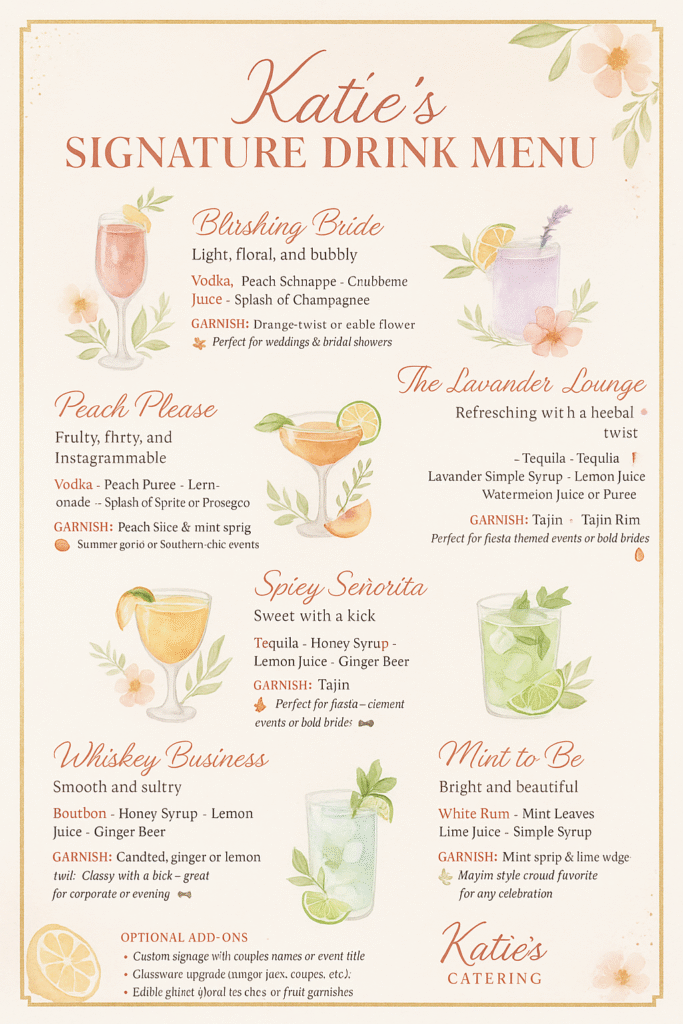 Signature Drink Menu Seasonally Influenced Please check back for updated options or to customize your package with your own selection of enjoyable.
